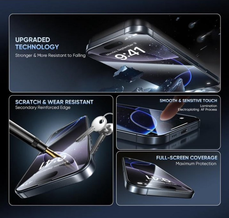 Premium-Bildschirmschutz, staubdichte Oberfläche, blasenfreies Applikationsdesign, ultraklarer Sicht, passend für iPhone und Samsung Modelle, kratzfest & abriebfest